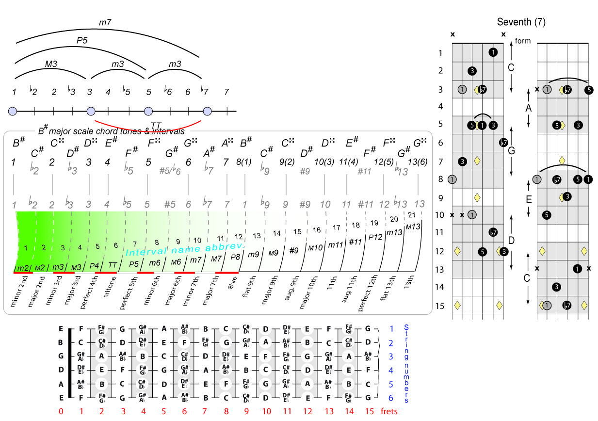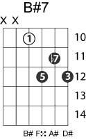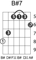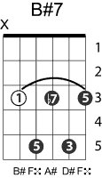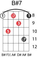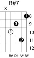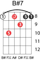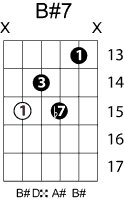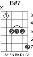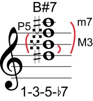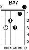 | Symbol: B#7 Alt. symbol: B#dom7 Name: B sharp dominant seventh | ![]() | C-3 | A-3 | A-3 | A-3 |