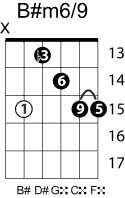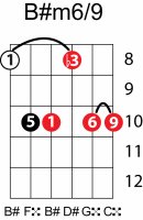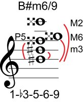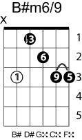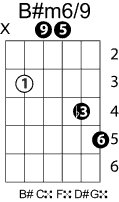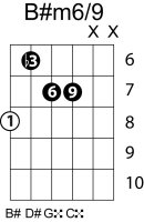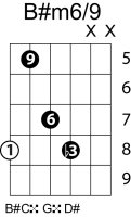 | Symbol: B#m6/9 Alt. symbol: Name: B sharp minor sixth, added ninth | ![]() | C-3 | A-3 | G-8 | G-8 |