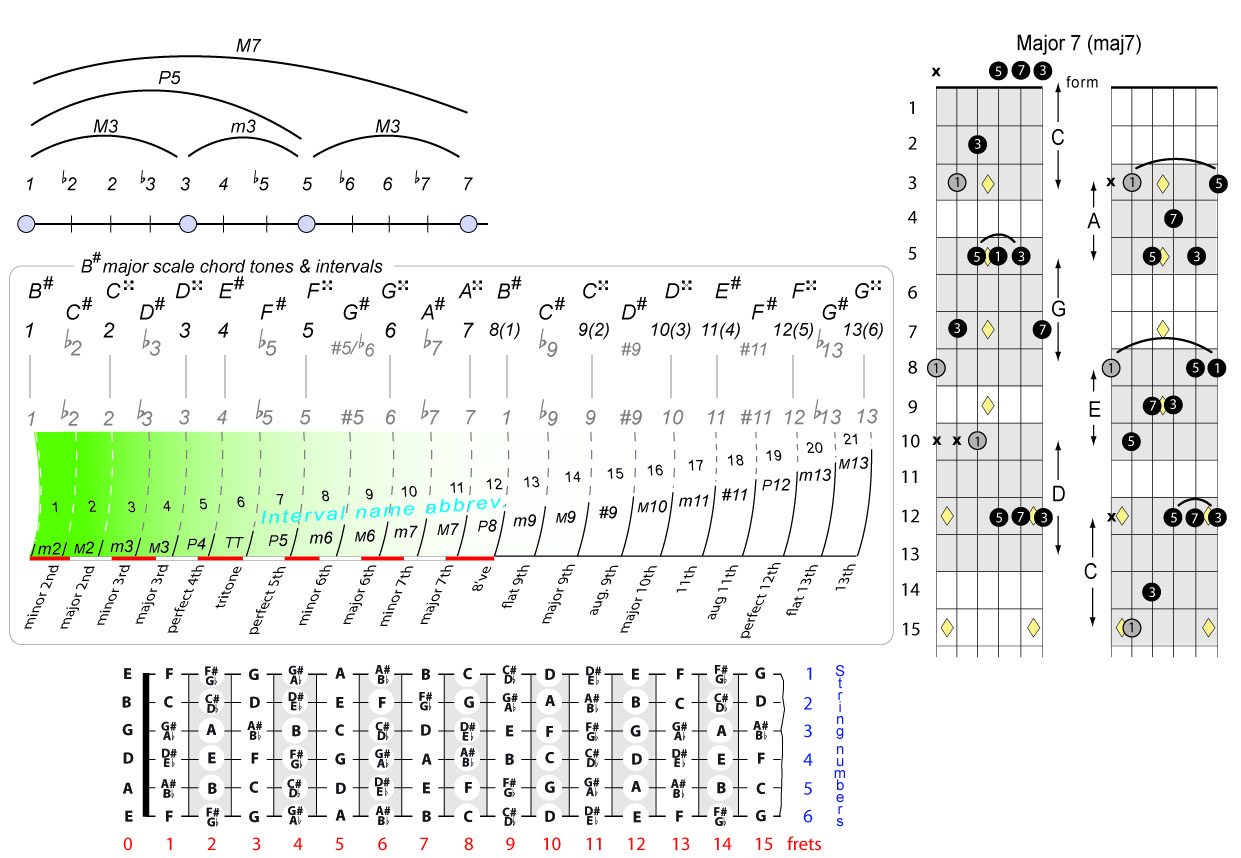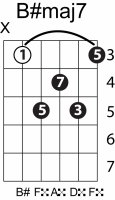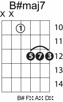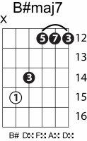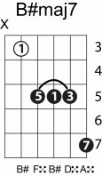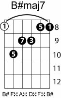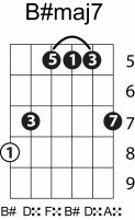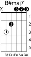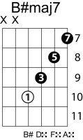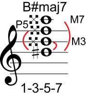 | Symbol: B#maj7 Alt. symbol: B#M7 Name: B sharp major seventh | ![]() | C-3 | A-3 | A-3 | G-8 |