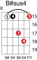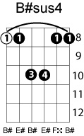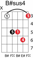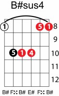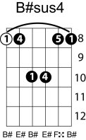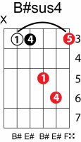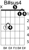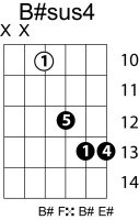 | Symbol: B#sus4 Alt. symbol: B#sus Name: B sharp suspended fourth | ![]() | C-3 | A-3 | A-3 | E-8 |