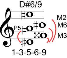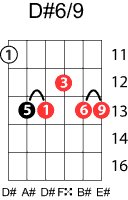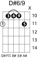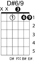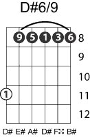 | Symbol: D#6/9 Alt. symbol: D#6add9 Name: D sharp sixth, added ninth | ![]() | E-1 | C-6 | G-11 | G-11 |