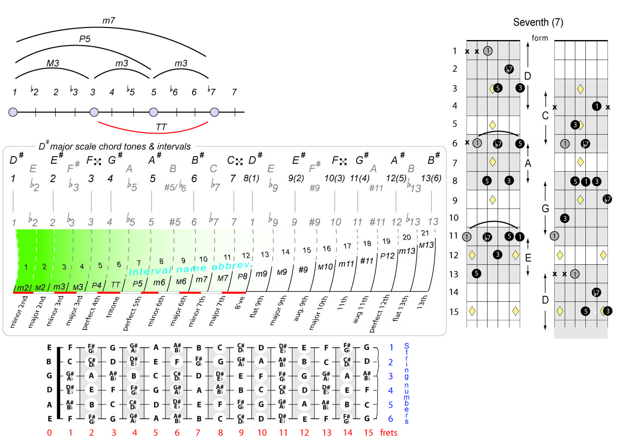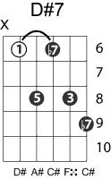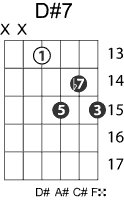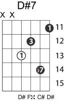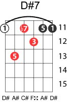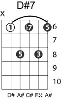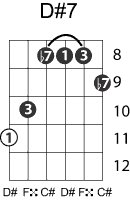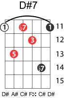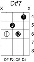 | Symbol: D#7 Alt. symbol: D#dom7 Name: D sharp dominant seventh | ![]() | D-1 | C-6 | A-6 | A-6 |