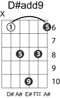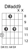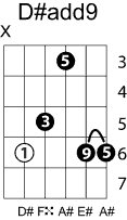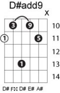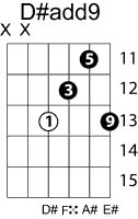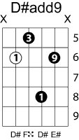 | Symbol: D#add9 Alt. symbol: Name: D sharp added ninth | ![]() | D-1 | C-6 | C-6 | A-6 |