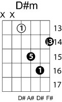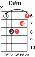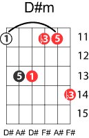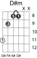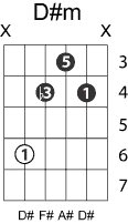 | Symbol: D#m Alt. symbol: D#min, D# - Name: D sharp minor | ![]() | D-1 | C-6 | A-6 | G-11 |