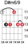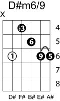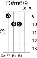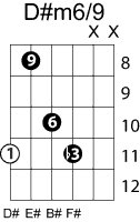 | Symbol: D#m6/9 Alt. symbol: Name: D sharp minor sixth, added ninth | ![]() | C-6 | G-11 | G-11 | E-11 |