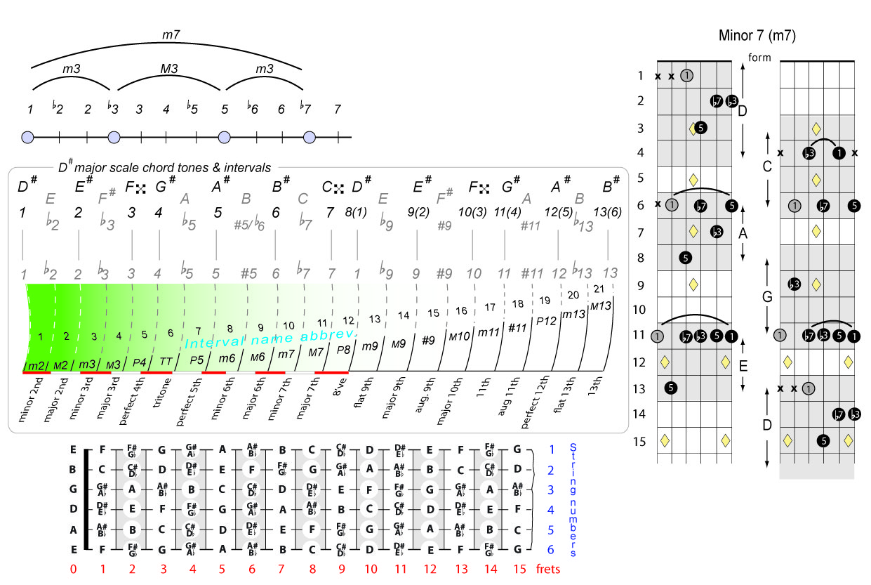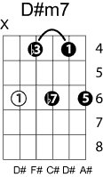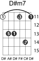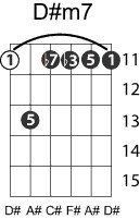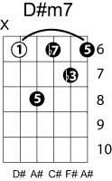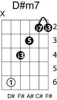 | Symbol: D#m7 Alt. symbol: D#min7, D#-7 Name: D sharp minor seventh | ![]() | D-1 | C-6 | C-6 | A-6 |