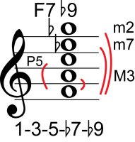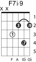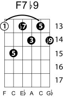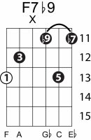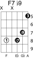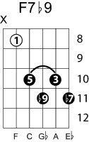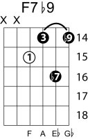 | Symbol: F7♭9 Alt. symbol: F7-9, Fdom7♭9 Name: F dominant seventh, flat ninth | ![]() | E-1 | E-3 | C-8 | C-8 |