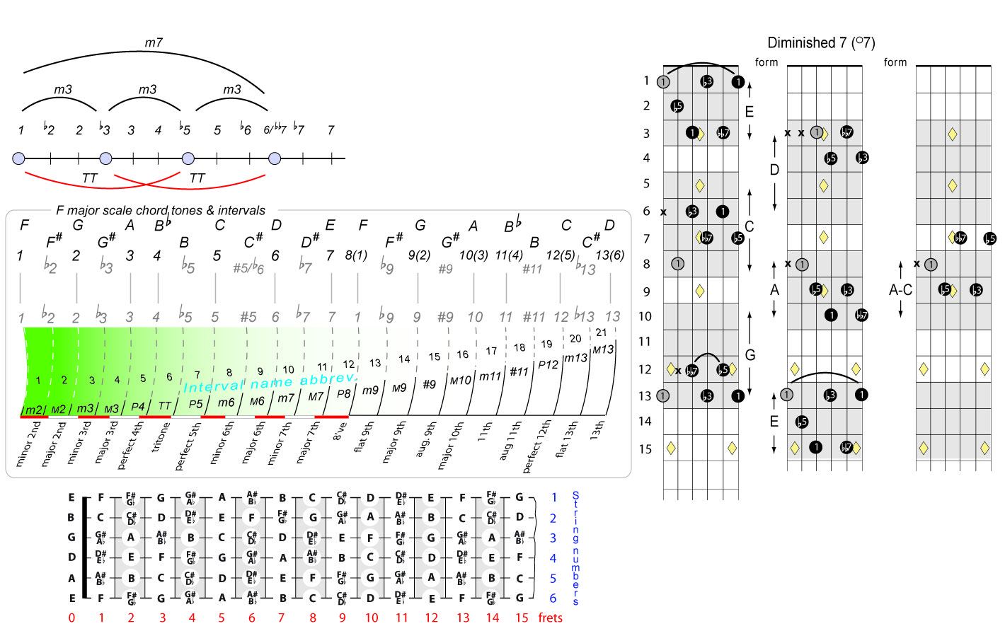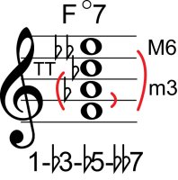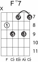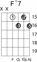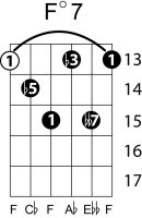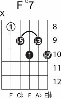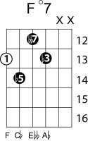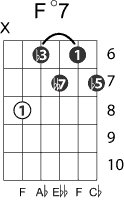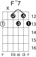 | Symbol: F°7 Alt. symbol: Fdim 7 Name: F diminished seventh | ![]() | E-1 | D-3 | C-8 | C-8 |