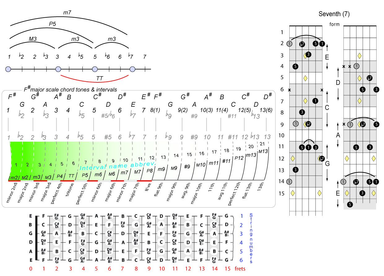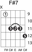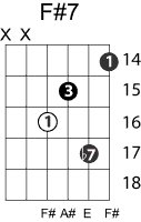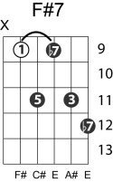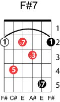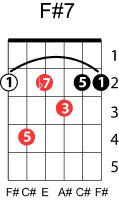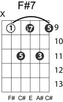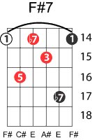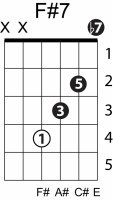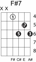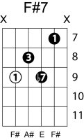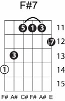 | Symbol: F#7 Alt. symbol: F#dom7 Name: F sharp dominant seventh | ![]() | E-4 | E-2 | E-2 | D-4 | |