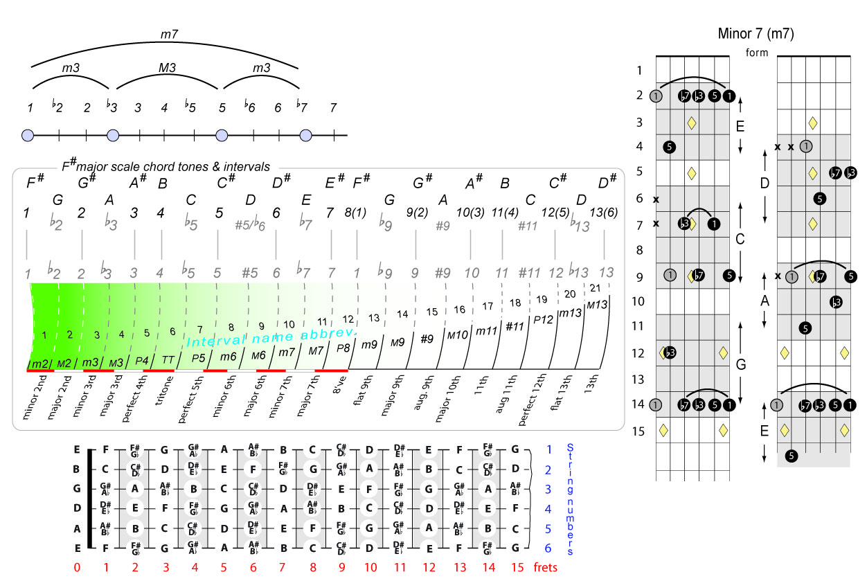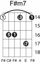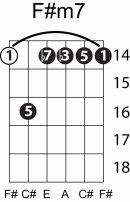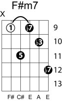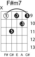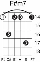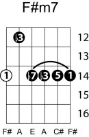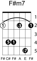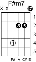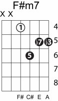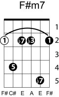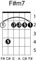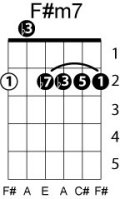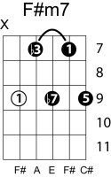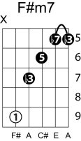 | Symbol: F#m7 Alt. symbol: F#min7, F#-7 Name: F sharp minor seventh, flat fifth | ![]() | G-2 | E-2 | E-2 | E-2 | |