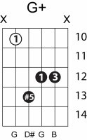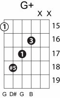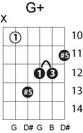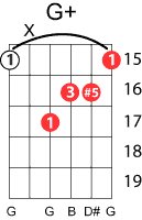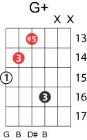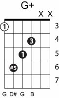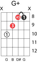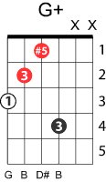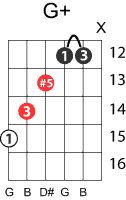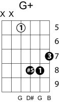 | Symbol: G+ Alt. symbol: Gaug, G(#5) Name: G augmented | ![]() | G-3 | G-3 | E-3 | E-3 | |
