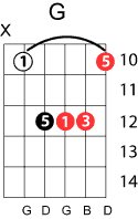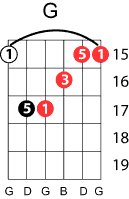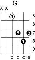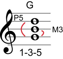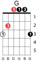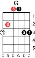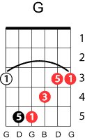| Symbol: G Alt. symbol: Gmaj, GM Name: G major | ![]() | G-3 | G-3 | E-3 | D-5 |